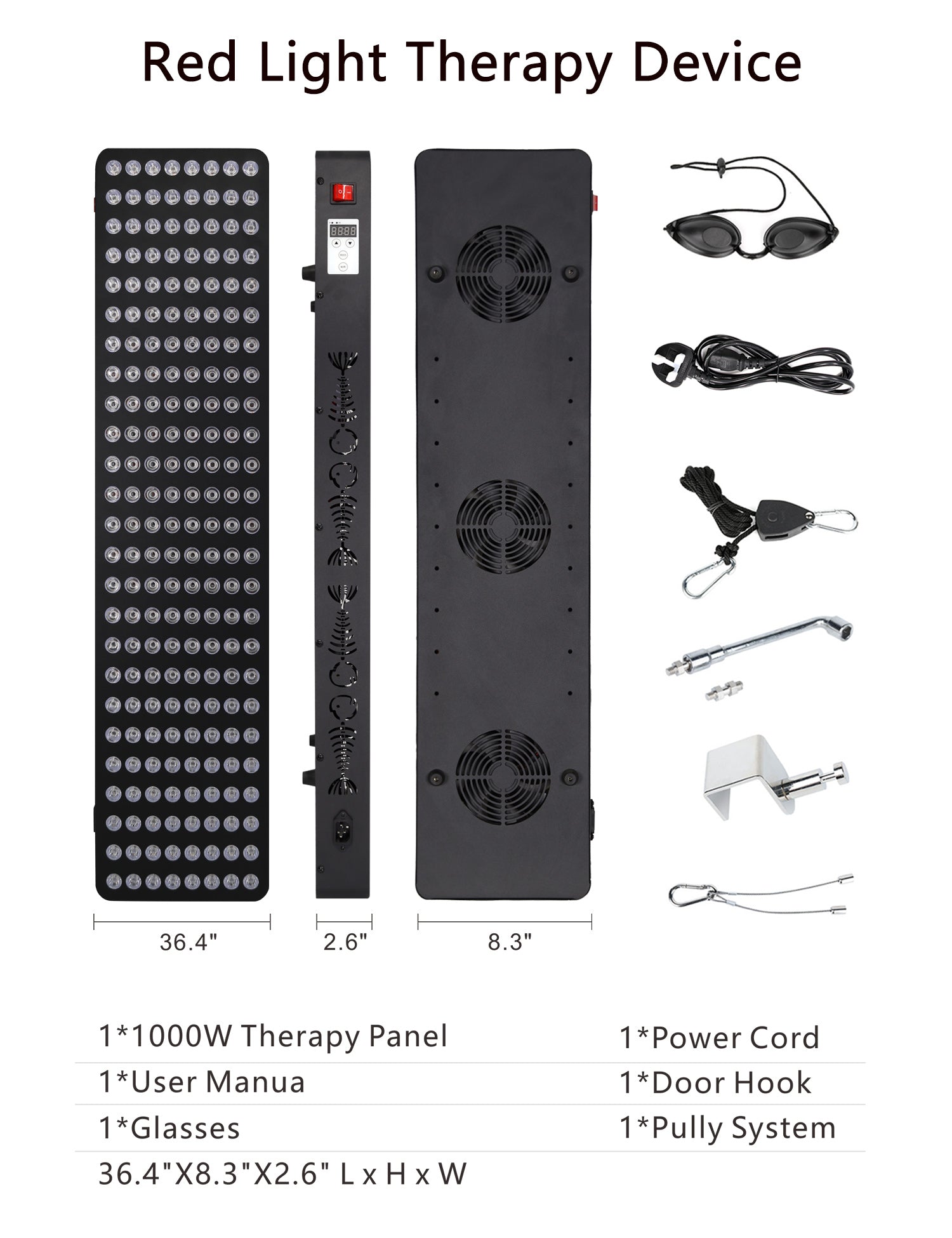 Each panel comes with the device, adjustable stand/mount, blackout goggles, power adapter, and user guide.